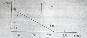 На денежном рынке, где сталкиваются спрос и предложение, спрос является величиной относительно устойчивой и предопределенной стоимостью валового национального продукта (в части спроса на деньги для сделок) и процентной ставкой (в части спроса на деньги со стороны активов). А денежное предложение можно изменять путем проведения определенной политики со стороны Правительства и Центрального банка.