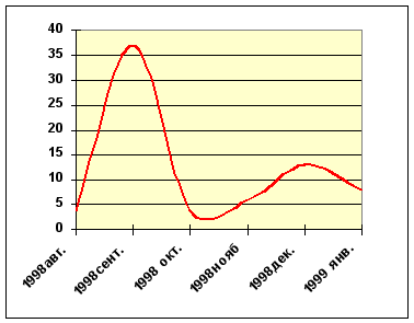 Рис.2Месячные изменения ИПЦ в России в августе 1998-январе 1999 (в%)