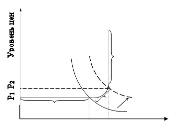 Увеличение денежной массы по указанным выше причинам в течении короткого промежутка времени сдвигает кривую совокупного спроса вправо (АD1 ®AD2 ), и если экономика находится на промежуточном (2) или классическом (3) отрезках кривой совокупного предложения, то это ведет к росту цен, что представляет инфляцию спроса [6, c. 428].