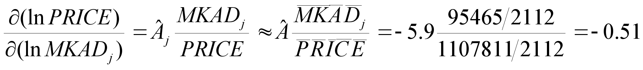 LN(MKAD) -0.448977 0.158011 -2.841426 0.0049