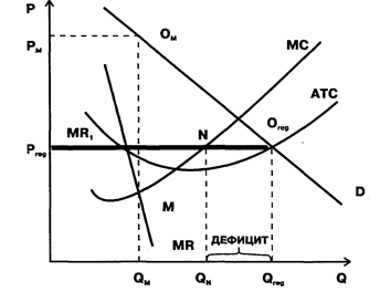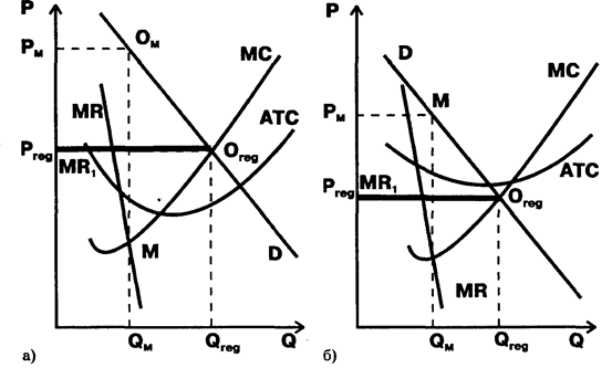На рис. 2.2 видно, что и этот подход к регулированию решает задачу прироста производства (Qreg > QM ) и понижения цены (Рreg < РM ).