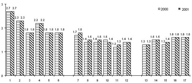 [7] Источник: Российский статистический ежегодник 2001. М.: Госкомстат России, 2000, с 495. Российский статистический ежегодник. 1998. M.:Госкомстат России, 1998, с.640