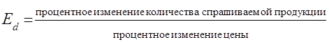 Степень ценовой эластичности или неэластичности определяют с помощью коэффициента эластичности, который определяется по формуле: