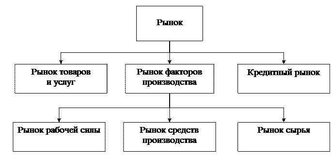 Рынок в целом представляет систему отдельных взаимосвязанных рынков (рис. 2). Кредитный рынок наряду с другими рынками – одна из составляющих «большого» рынка. Взаимосвязь различных рынков, их взаимодействие и влияние друг на друга обеспечивают функционирование и устройство рынка в целом.