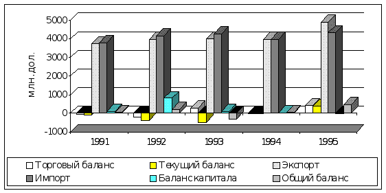 В прошедшем 1995г. были отмечены признаки стабилизации платежного баланса (см.рис.4-1)