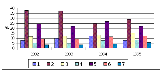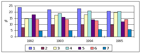| 1995 | 10,1 | 43,7 | 46,2 | 100,0 |