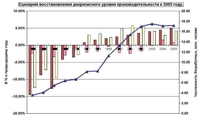 Фактически данный сценарий – один из вариантов так называемого оживления без новых рабочих мест, при котором экономический рост определяется факторами, замещающими потребность в новой рабочей силе.
