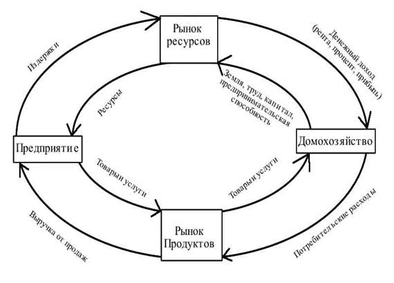 Рисунок 1 - Модель кругооборота ресурсов, продукта и дохода
