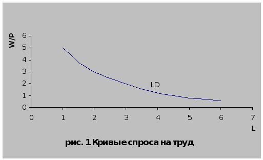 Функциональная зависимость между величиной заработной платы и размером спроса на труд выражается в кривой спроса на труд, показанной на рис. 1 (приложение 1).