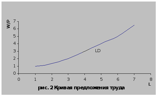 Иначе обстоит дело с функцией предложения труда (рис. 2, приложение 1). Она также зависит от величины заработной платы, получаемой за производительные услуги. Предложение рабочей силы – это потребность различных групп трудоспособного населения в получении работы по найму и на этой основе – источника средств существования.