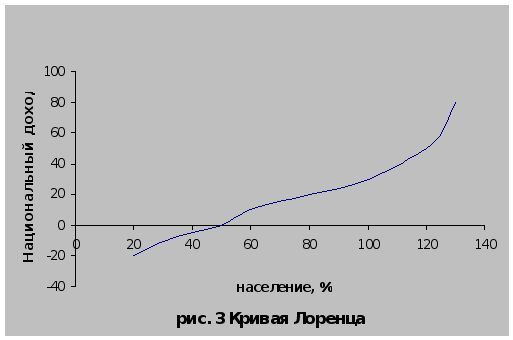 Цена труда, норма прибыли, спрос и предложение труда, конкуренция – все эти факторы саморегулирования рынка труда формируют доход населения и распределяют общественное богатство. Крупнейшие экономисты Запада признают неравенство в распределении доходов и богатства. Причем под богатством они понимают имеющееся движимое и недвижимое имущество, деньги, ценные бумаги, а под доходом – общую сумму денег, заработанную или полученную другим путем в течение какого-либо периода. Западные экономисты используют так называемую кривую Лоренца (рис. 3) для изучения распределения доходов между разными группами населения. Статистика разных стран показывает, что большая часть населения имеет минимальные доходы, а меньшая – очень высокие. Поэтому кривая Лоренца при продвижении от беднейших слоев населения к богатейшим получает все больший угловой коэффициент наклона касательной, то есть поднимается все круче.