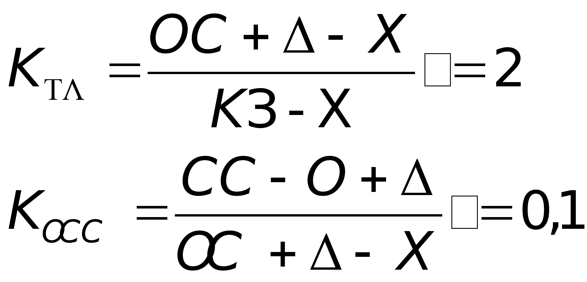 КТЛ=IIA/[YIП-(640+650+660)] ; КОС=[IYП-IA]/IIA ;