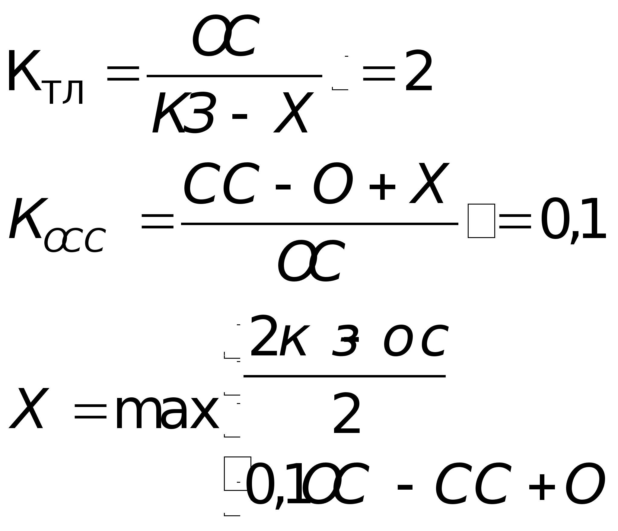 Выбираем значения b, X, ОС при которых КТЛ и КОСС наиболее приближены к нормативным. КТЛ =2и КОС=0,518