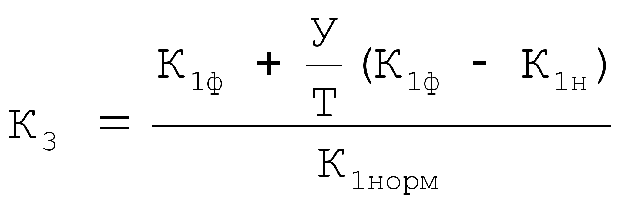 КУП=[К1Ф+У(К1Ф-К1Н)/Т]/К1НОРМ.