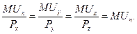 Введем обозначения: цены товаров – Р x , Р y , Pz ; предельные полезности товаров – MUx , М Uy , М Uz .