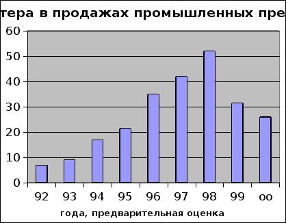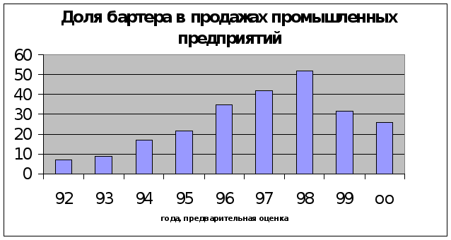 Рис. 1. Доля бартера в продажах промышленных предприятий.