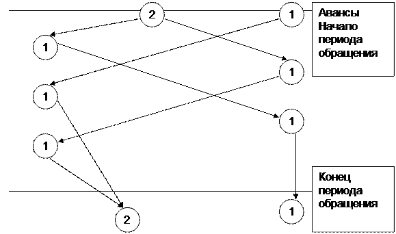 Производительный класс использует 1 млрд. лир, полученный от землевладельцев (за продажу сельскохозяйственных продуктов), на покупку изделий бесплодного класса (это не те изделия, которые покупаются землевладельцами). С помощью полученной суммы бесплодный класс возвращает свой аванс в размере 1 млрд. лир. Наконец, с выручки от продажи сырья и средств существования бесплодному классу, производительный класс может заплатить сумму 2 млрд. лир владельцам земли, которую он использовал. В конце периода собственники снова располагают доходом в 2 млрд. лир, а бесплодный класс – 1 млрд. лир, и обращение может начинаться сначала.