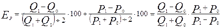 Если обозначить цену Р , а величину спроса Q , то показатель (коэффициент) ценовой эластичности спроса Ер равен:
