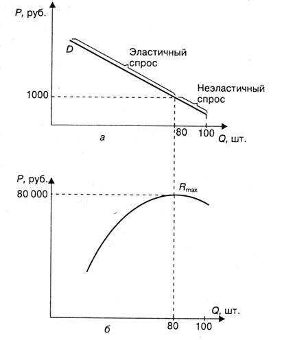 Рис. 5. Эластичность спроса (а ) и изменение валовой выручки (б ):