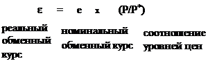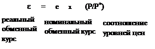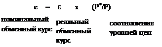 Пусть е — номинальный обменный курс (количество йен за доллар), Р — уровень цен в Соединенных Штатах (выраженный в долларах), а Р* — уровень цен в Японии (выраженный в йенах). Тогда реальный обменный курс e равен: