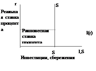 Левая часть уравнения показывает, что национальные сбережения зависят от дохода Y и переменых экономической политики G и Т. Для неизменных Y, G и Т национальные сбережения S также неизменны. Правая часть уравнения показывает, что инвестиции зависят от ставки процента.