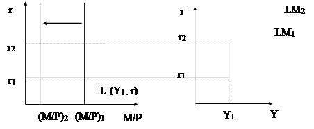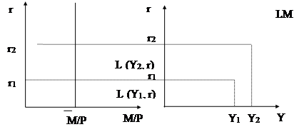 возрастание дохода приводит к возрастанию (сдвигу) спроса на деньги, это ведет к росту r (при заданном предложении денег).