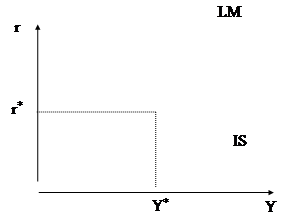 т.е. при такой комбинации r и Y, при которой одновременно находятся в равновеси рынок товаров и денежный рынок:
