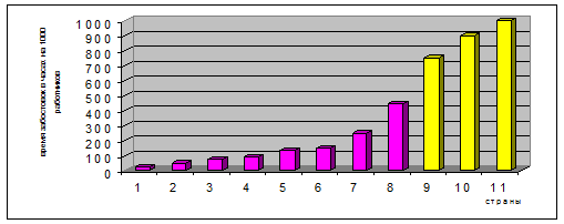 Жизнь показывает: чем богаче страна, чем выше в ней уровень благосостояния, тем спокойнее строятся отношения на рынке труда, тем реже и короче забастовки. Это хорошо показывает график.
