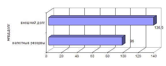 На конец 2000 г. Южная Корея располагала 96 млрд. долл. валютных резервов, что обеспечивало ей 5-е место в мире. При этом ее внешний долг составлял 136,6 млрд. долл.