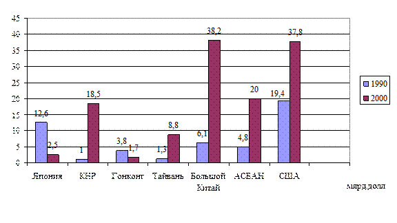 Значение США и Японии несколько снизилось. Укрепляются связи с КНР, странами АСЕАН. На долю КНР приходится 9% южно-корейского экспорта и 1% импорта.