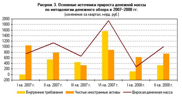 Рисунок3-Основные источники прироста денежной массы по методологии денежного обзора в 2007-2008 гг.