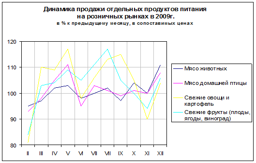 Динамика продажи потребительских товаров на розничных рынках в 2009 году |