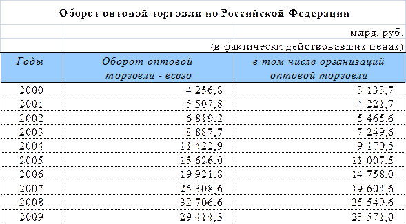 2. О ситуации на рынке оптовой торговли на 2000-2010 гг.