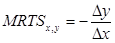 На рисунке 2.4 видно, что при переходе от точки А к точке В и при увеличении фактора х на единицу необходимо фактор у уменьшить на две единицы, т.е. MRTSx , y = - 2.