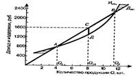 Предприятие получает прибыль когда Иобщ меньше Двал (отрезок АВ).Предприятие будит производить продукцию от Qa до Qв.Максимизация прибыли будит достигнута при объеме Qд,когда разница между Двал и Иобщ максимальна.Убытки(больше Qв и меньше Qа)
