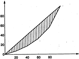 При равномерном распределении дохода эта линия совпадает с биссектрисой. Чем больше она откланяется от этой биссектрисы, тем более не равномерно распределены доходы в обществе.