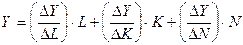 Y означает национальный доход или ВНП данной страны, а L, K, N – наличные трудовые ресурсы, капитал и земельные ресурсы в масштабах национальной экономики .