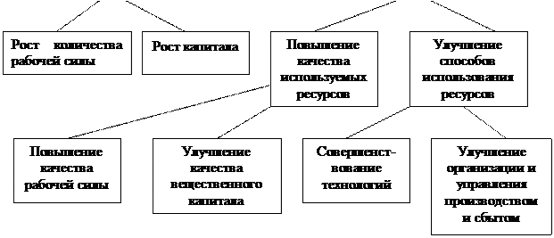 Рис. 2. Экстенсивные и интенсивные факторы экономического роста