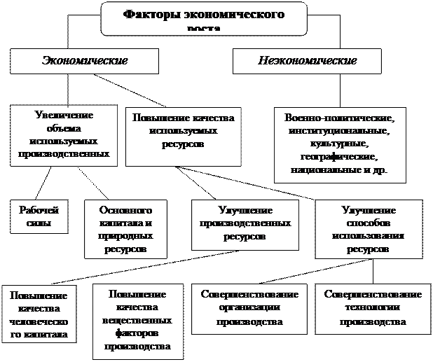 Под факторами экономического роста в экономической теории понимаются те явления и процессы, которые определяют возможности увеличения реального объема производства, повышения эффективности и качества роста.
