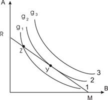 Потребительское равновесие достижимо в случае, если общая полезность, получаемая при данном денежном доходе, не может быть увеличена путем повышения затрат на один товар за счет снижения затрат на другой товар.