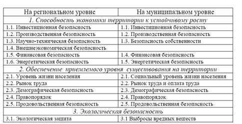 1.2 Экономическая безопасность региона в системе национальной безопасности: угрозы и факторы риска
