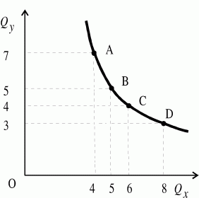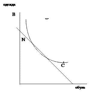 Движение от А к В общество увеличивает удовлетворение потребительскими благами, от В к С потребительские блага остаются на том же уровне, при этом не используются имеющиеся ресурсы для создания инвестиционных благ, от С к А – объем потребительских благ не изменяется, при использования этих же ресурсов растет создание инвестиционных благ. Движение от А к Д желаемо, но оно не достижимо при данном количестве ресурсов и производственных возможностях.