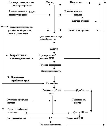 Прогнозирование ВНП и других важднейших макроэкономических переменных следует начать с "экзогенных" переменных - поведение которых слабо связано с текущим развитием экономики - и перейти далее к "эндогенным" , поведение которых в значительной степени зависит от всего остального.