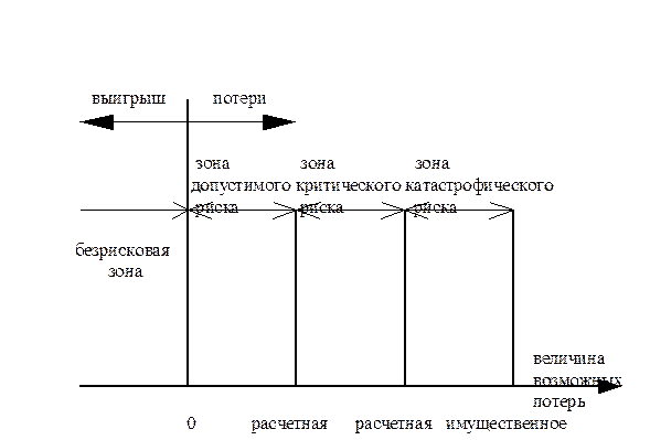 Рассмотрим некоторые из главных показателей риска. С этой целью сначала выделим определенные области или зоны риска в зависимости от величины потерь (рис. 1)[4] .