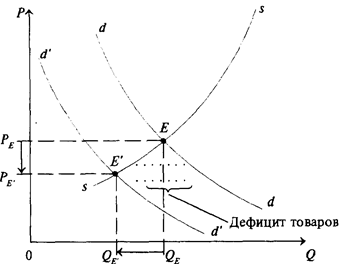 Нарушение законов ценообразования произошло прежде всего потому, что спрос не ограничивался только группами социально незащищенного населения, для которых был установлен низкий уровень цен. Главное состоит в том, что этот принудительно «смещенный» спрос вызвал тенденцию сокращения производства и предложения товаров из-за их принудительно низких цен. Производители не заинтересованы выпускать и поставлять на рынок товары по ценам, не возмещающим издержки производства. Возникающий вследствие этого дефицит товаров окажется необычайно болезненным для потребителей и вызовет нарастающее социальное напряжение.[1,321]