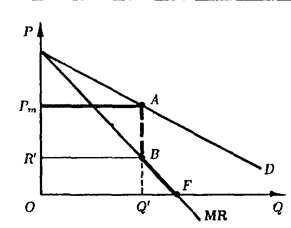 Эффективная кривая предельной выручки также будет состоять из двух сегментов — горизонтального сегмента РmА и имеющего отрицательный наклон сегмента BF. Действительно,