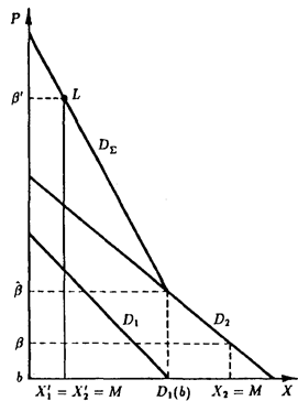 Рис. 1.6. Ценообразование по Рамсею в случае двухпродуктовой естественной монополии.