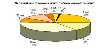 Банковские билеты (банкноты) – вид денежных знаков, законное платежное средство, выпускаемое в обращение центральными банками. После проведения деноминации (укрупнения масштаба цен) с 1 января 1998 г. в обращении находятся банкноты достоинством 10, 50, 100, 500 и 1000 рублей, а также монеты достоинством 1, 2, 5 рублей и 1,5,10 и 50 копеек. ( диагр.1) Диаграммы 1(данные на 01.01.2003)