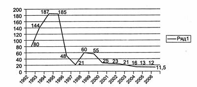 В соответствии с другой точкой зрения финансовая стабилизация отождествлялась с поддержанием инфляции на определенном уровне с целью последующей активизации инвестиционной деятельности, стабилизации и роста производства. В этом случае роль Центрального банка РФ в экономике становится явно гипертрофированной. Вместе с тем российская практика начала - середины 1990-х годов показала несостоятельность данной концепции. Уже к концу 1996 г. стало ясно, что, несмотря на достаточно устойчивое снижение темпов инфляции и уменьшение бюджетного дефицита, спад ВВП и промышленной продукции усилился, не удалось повысить и инвестиционную активность.