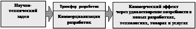 Рисунок 1. Место трансфера и коммерциализации научно-технических разработок в процессе получения коммерческого эффекта от имеющегося научно-технического задела